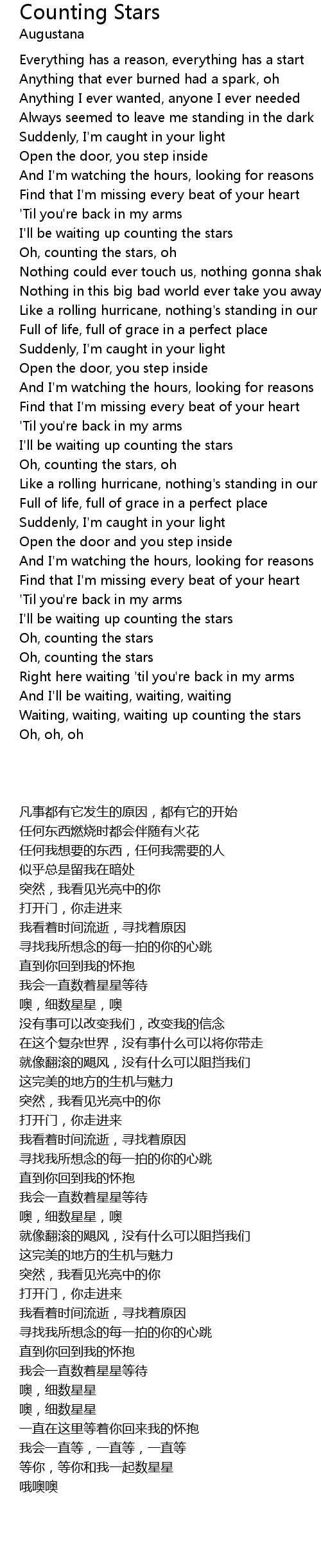 Counting stars Counting stars, Stars, Lyrics